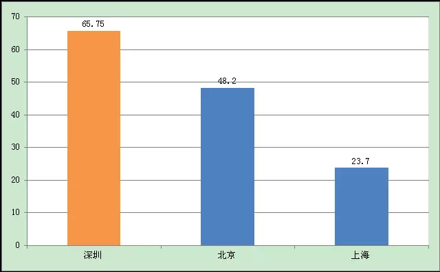 深圳:2014年每万人有效发明专利拥有量65.75件,是全国平均水平的13.4倍。