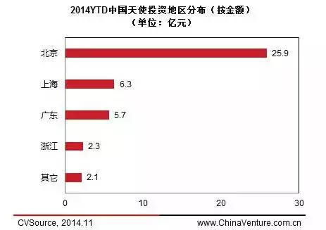 投中集团数据显示,2014年中国天使投资案例数量,北京占比53%,总额为25.9亿元,双双居首;