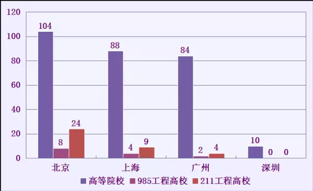 (北上广深高等院校基本情况。深圳市政府政研室数据)