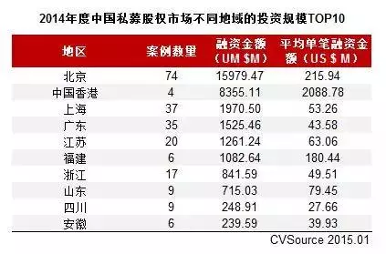 (2014年度中国私募股权投资地区分布TOP10。投中集团数据)